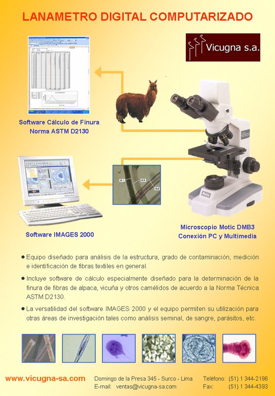 fibras animales, brindando equipos de Lanametro integrado con micro