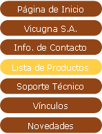 [ Página de Inicio ] [ Vicugna S.A. ] [ Información de Contacto ] [ Lista de Productos ] [ Soporte Técnico ] [ Vínculos ] [ Novedades ]