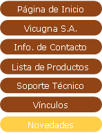 [ Página de Inicio ] [ Vicugna S.A. ] [ Información de Contacto ] [ Lista de Productos ] [ Soporte Técnico ] [ Vínculos ] [ Novedades ]